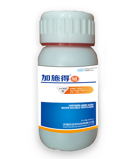 本品是一種富含高活性鉬元素的多元素微肥,專(zhuān)為作物缺鉬而研制。鉬是硝酸還原酶的成分,參與植物體內(nèi)硝酸鹽的還原和氮素代謝,也是固氮酶的主要組成元素,缺鉬會(huì)影響根瘤固氮和蛋白質(zhì)的合成。鉬還能促進(jìn)作物對(duì)磷的吸收和無(wú)機(jī)磷向有機(jī)磷的轉(zhuǎn)化。鉬在維生素C和碳水化合物的生成、運(yùn)轉(zhuǎn)和轉(zhuǎn)化中都有重要作用。當(dāng)作物缺鉬時(shí),若以硝態(tài)氮為氮源,則會(huì)在作物體內(nèi)積累硝酸根離子,從而減少蛋白質(zhì)的合成。另外,水解各種磷酸脂的磷酸酶活性也要受到鉬的影響,缺鉬時(shí)作物體內(nèi)維生素C的含量也會(huì)減少。作物缺鉬時(shí)的主要表現(xiàn)是生長(zhǎng)發(fā)育不良、植株矮小、葉片失綠、向上彎曲和枯萎、生長(zhǎng)點(diǎn)死亡、花的發(fā)育受到抑制,子實(shí)不飽滿(mǎn)、根瘤少、黃化、雜色斑點(diǎn)、落果、果小、果實(shí)色澤暗淡、果實(shí)少等現(xiàn)象。果樹(shù)(柑橘、砂糖橘、臍橙、柚子、荔枝、龍眼、香蕉、梨、青棗、蘋(píng)果、葡萄等)、大豆、花生、油菜、蠶豆、豆角、扁豆、花椰菜、萵苣、菠菜、洋蔥、硬花甘藍(lán)、甜菜、番茄、黃瓜、芹菜、水稻、玉米、高粱、薯類(lèi)(紅薯、土豆等)、小麥、棉花等很多作物對(duì)鉬都比較敏感,及時(shí)葉面噴施、補(bǔ)充鉬肥,可有效提質(zhì)增產(chǎn)。作物苗期至現(xiàn)蕾期是補(bǔ)充鉬肥的關(guān)鍵時(shí)期,可連續(xù)葉面噴施1-2次,間隔15-20天一次;建議使用濃度600-800倍。
